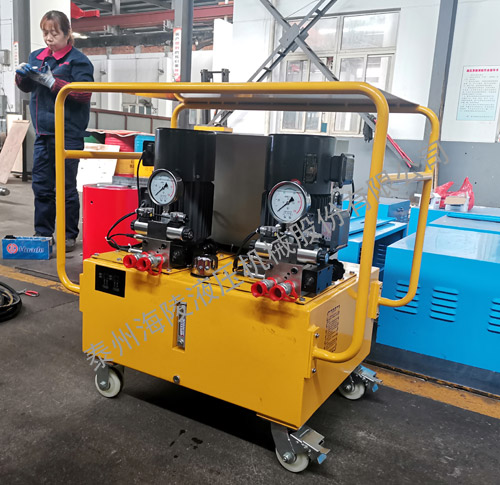 我公司生产的超高压电动油泵应用于中铁大桥局沪通大桥桥梁顶升项目现场,与1500t超高压千斤顶配合使用,由传感器采集数据反馈到液压控制系统同步控制顶升实现主墩钢箱梁起顶微调效平,配合箱梁斜拉索索缆挂锁固定施工。其中,最大起顶主墩单钢梁长度达826米,起顶吨位重量达2000吨。